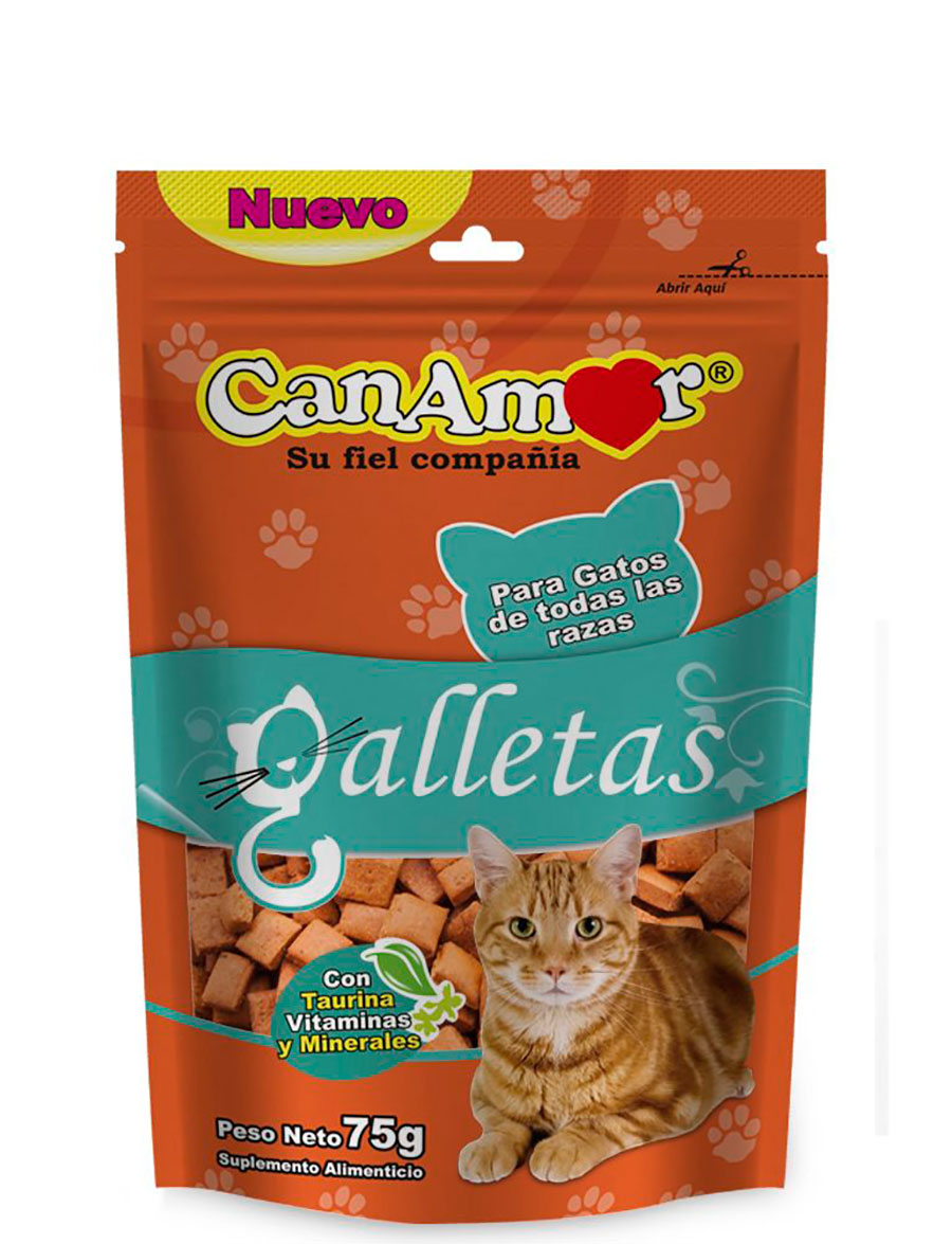 GALLETAS PARA GATOS CAN AMOR X 75GR Can Amor presenta sus Galletas para Gatos, un premio irresistible para mimar a tu felino consentido. Estas galletas crujientes están elaboradas con ingredientes seleccionados, brindando un sabor excepcional que a tu gato le encantará. Además de ser deliciosas, estas galletas también ayudan a mantener una buena higiene oral, apoyando la salud dental de tu mascota.