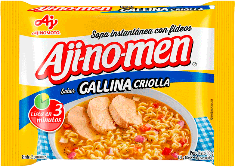 SOPA INS.AJI-NO-MEM GALL/CR*80: Es una sopa instantánea con fideos sabor a gallina criolla. Es fácil y rápida de preparar, solo se necesita agua caliente. Tiene un sobre sazonador a base de verduras que le da un toque casero y delicioso. Es ideal para disfrutar en cualquier momento del día o para acompañar tus comidas. Se presenta en un sobre de 80 gramos.